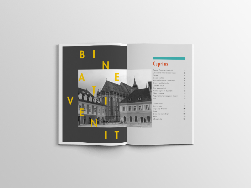 I participated in AIESEC's Global Community Development Programme as a volunteer on the ReBrander project in Brasov, Romania. My role was to reconstruct the visual identity of the Transylvania University of Brasov, the outcome was the redesign of their student guide book which was printed for more than 1,000 students.